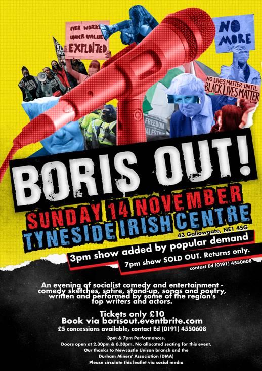 See you all at Boris Out! at the Tyneside Irish Centre on November 14’.